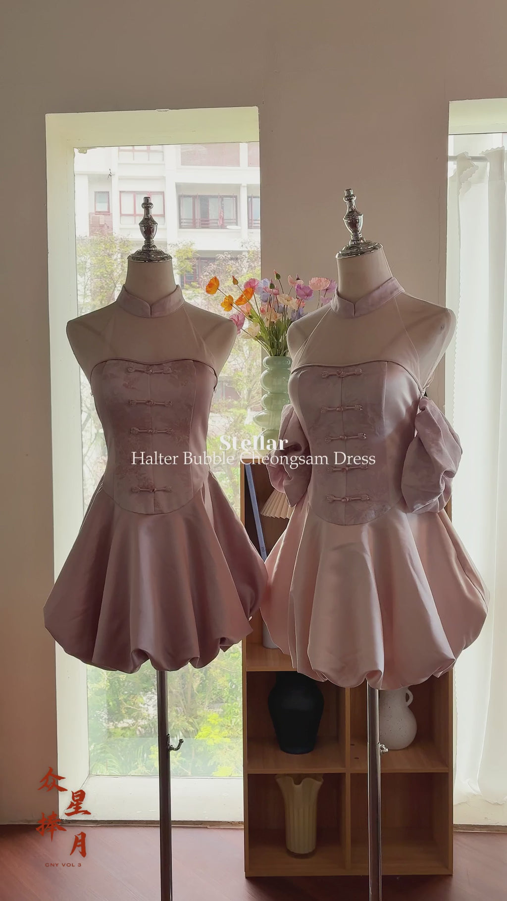 [ETA 26-31 Jan] 众星捧月 Stellar Halter Bubble Cheongsam Dress (Rose Gold Pink)