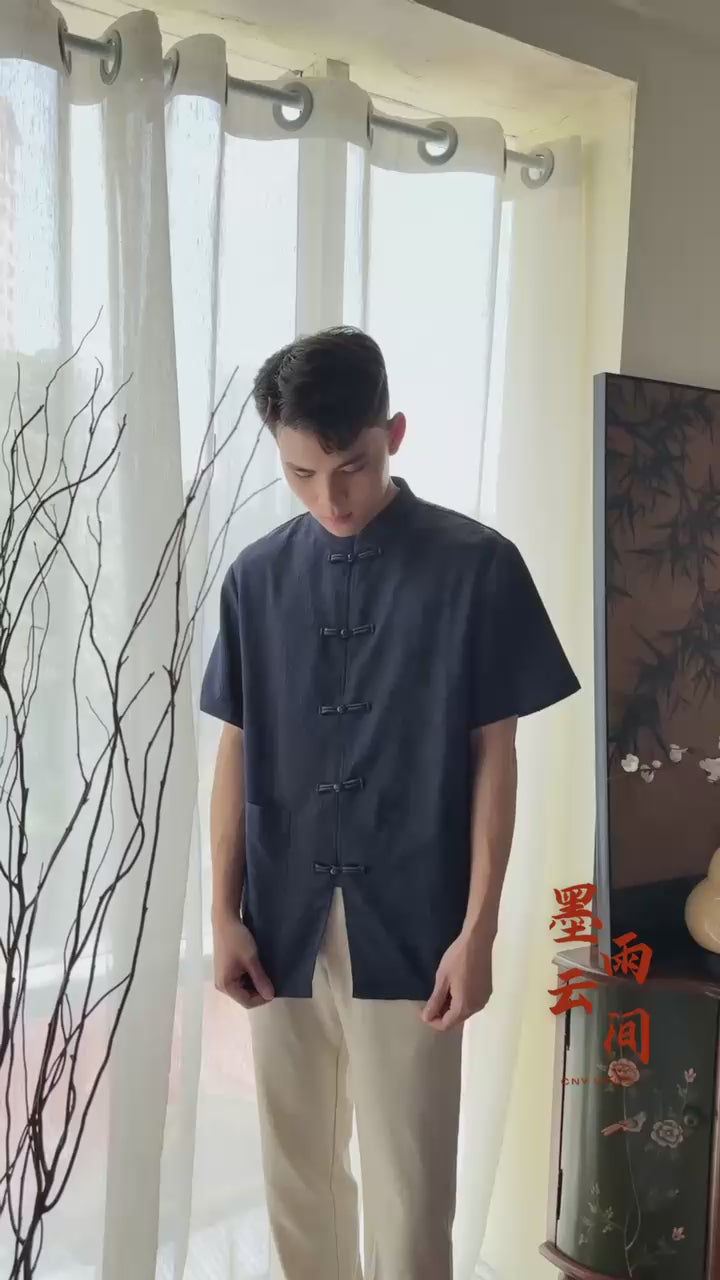 Features: Mandarin Collared Neckline, Functional Pearl Pankou, Short Sleeves, Functional Front Pockets