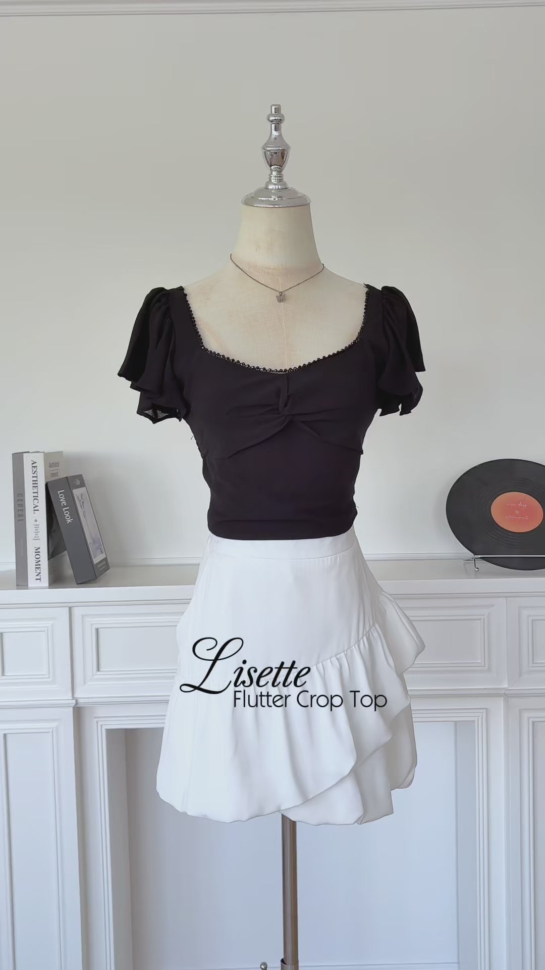 Lisette Flutter Crop Top (Black)